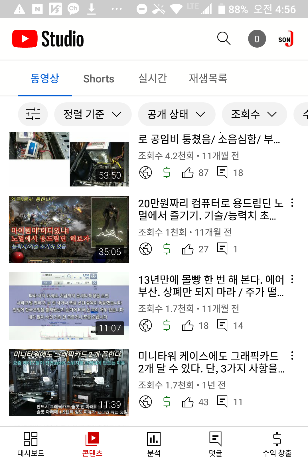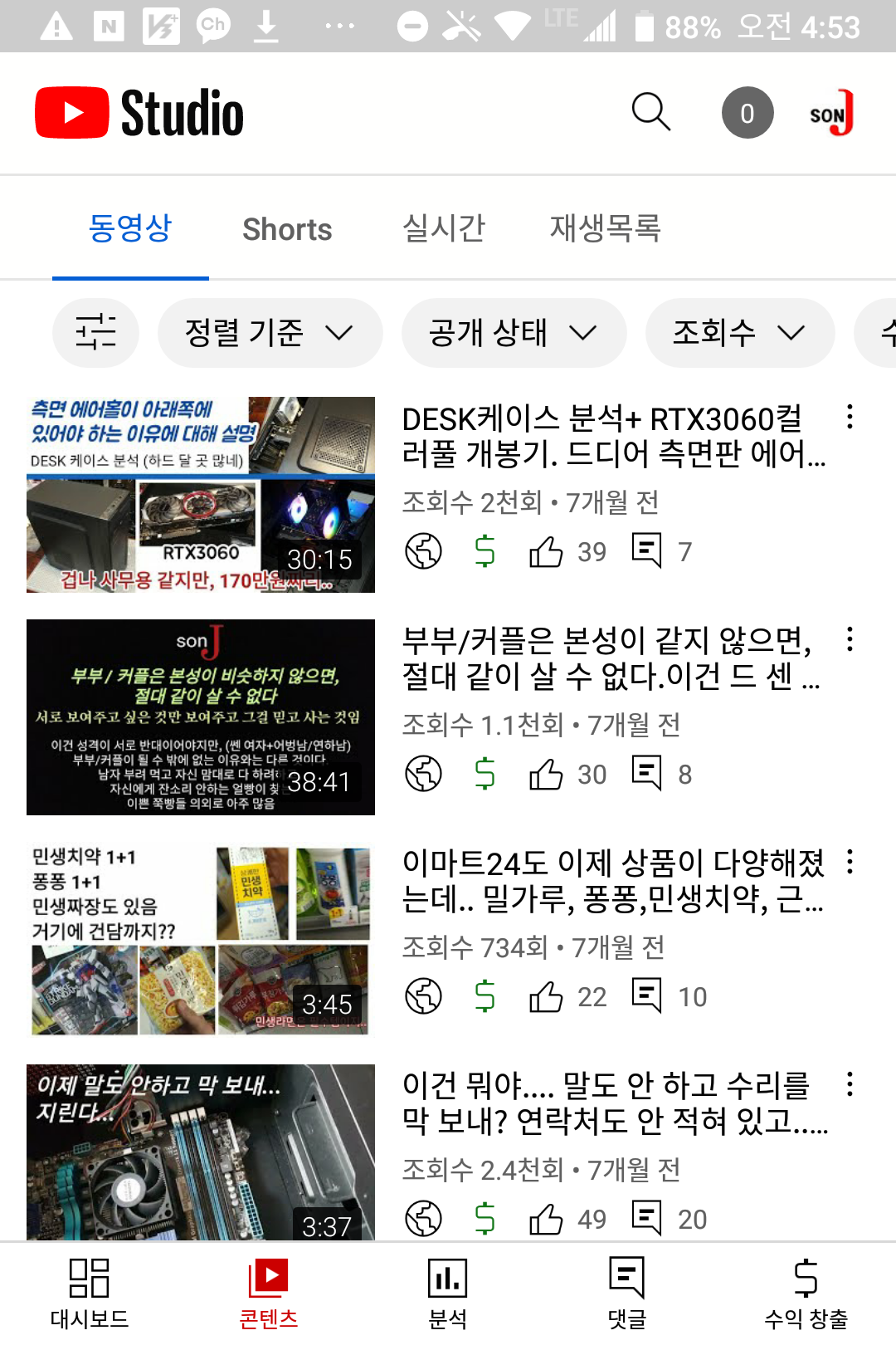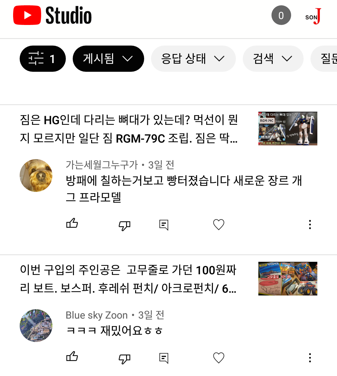 심지어 구독취소를 누르는 경우가 점점 많아졌다. 내 채널에 가장 많은 업로드를 하는 분야는 컴퓨터 조립/수리과정, 컴퓨터 부품 리뷰 영상이다. 그 다음이 프라모델 영상이었다. 가끔 연애학, 편의점 운영 요령에 대한 강의를 올렸다.