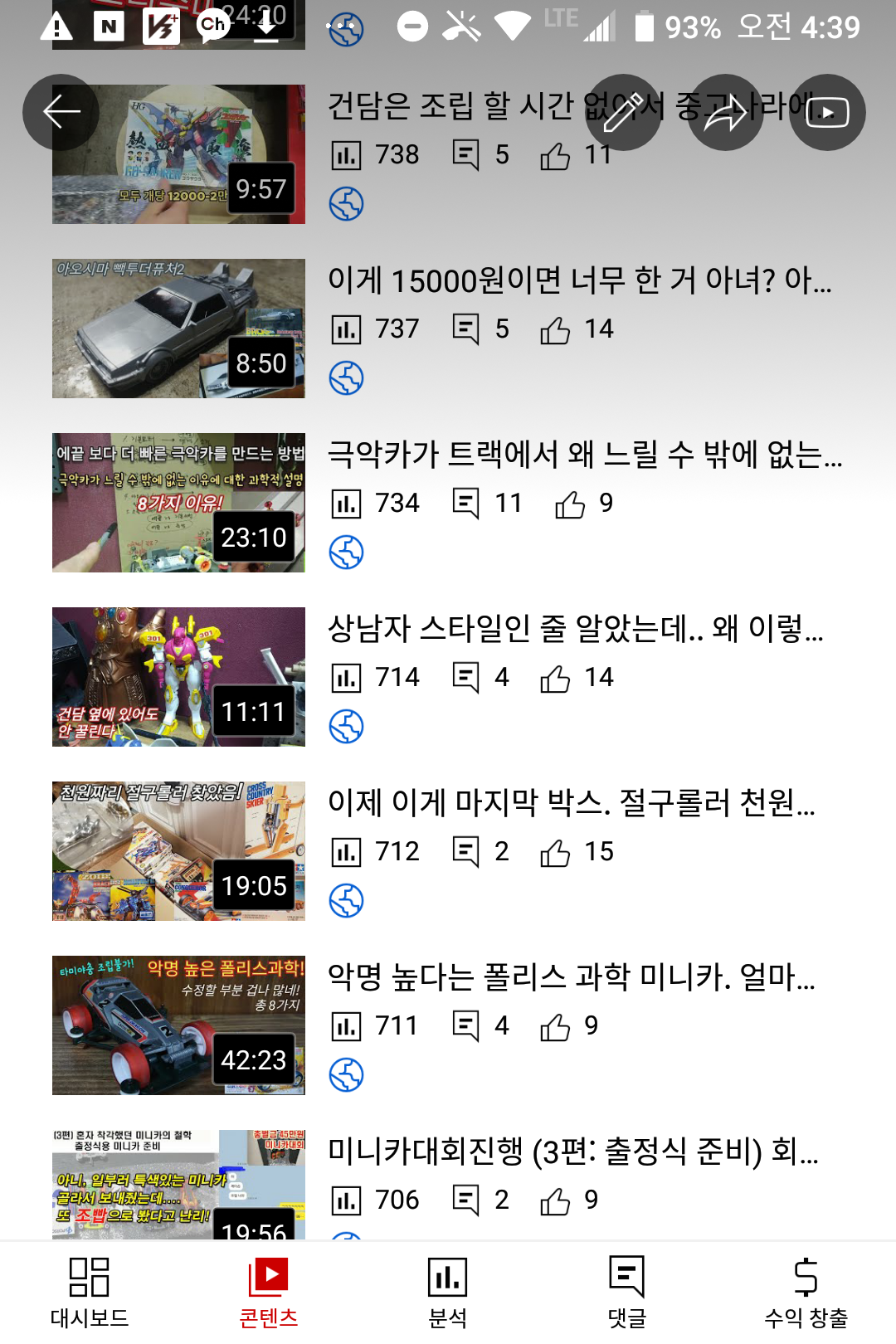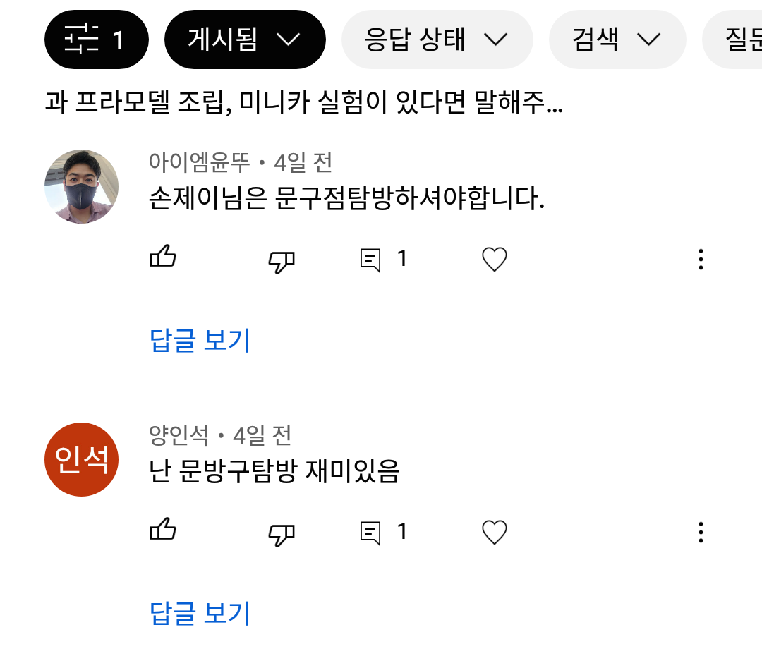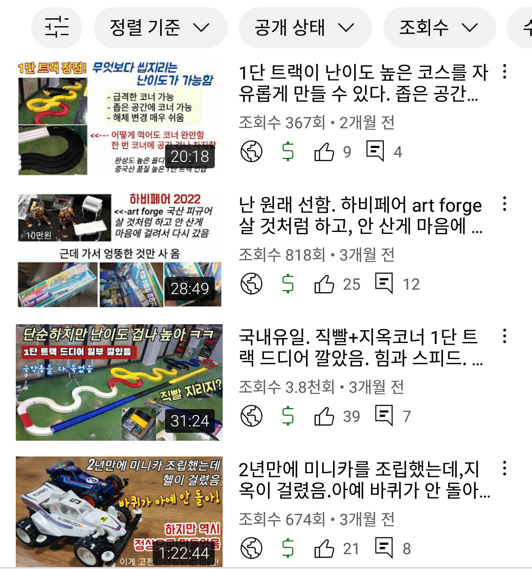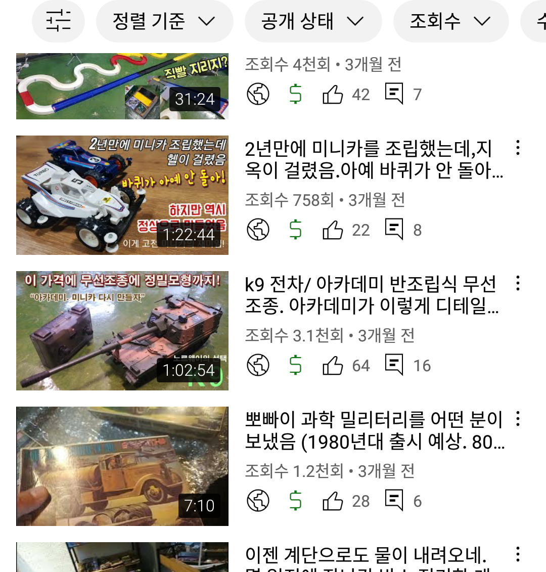 새로 만든 채널에서 가장 인기가 있는 문방구 탐방 영상도 (3000회-5만회) 750회라는 처참한 조회수... 그것도 크리스마스 특집으로 올린 영상이 750회이다. 영상이 올라간 뒤에...다른 컴퓨터 영상/맛집 영상이 올라가면서 막 섞이니... 프라모델 영상을 보는 사람들도 "어? 새로운 영상이네?" 하고 파악하기도 어려운 것이다.