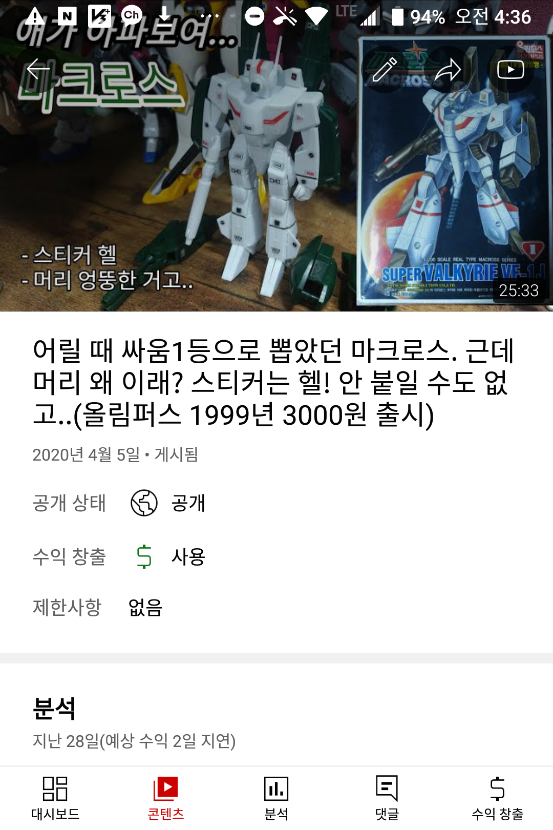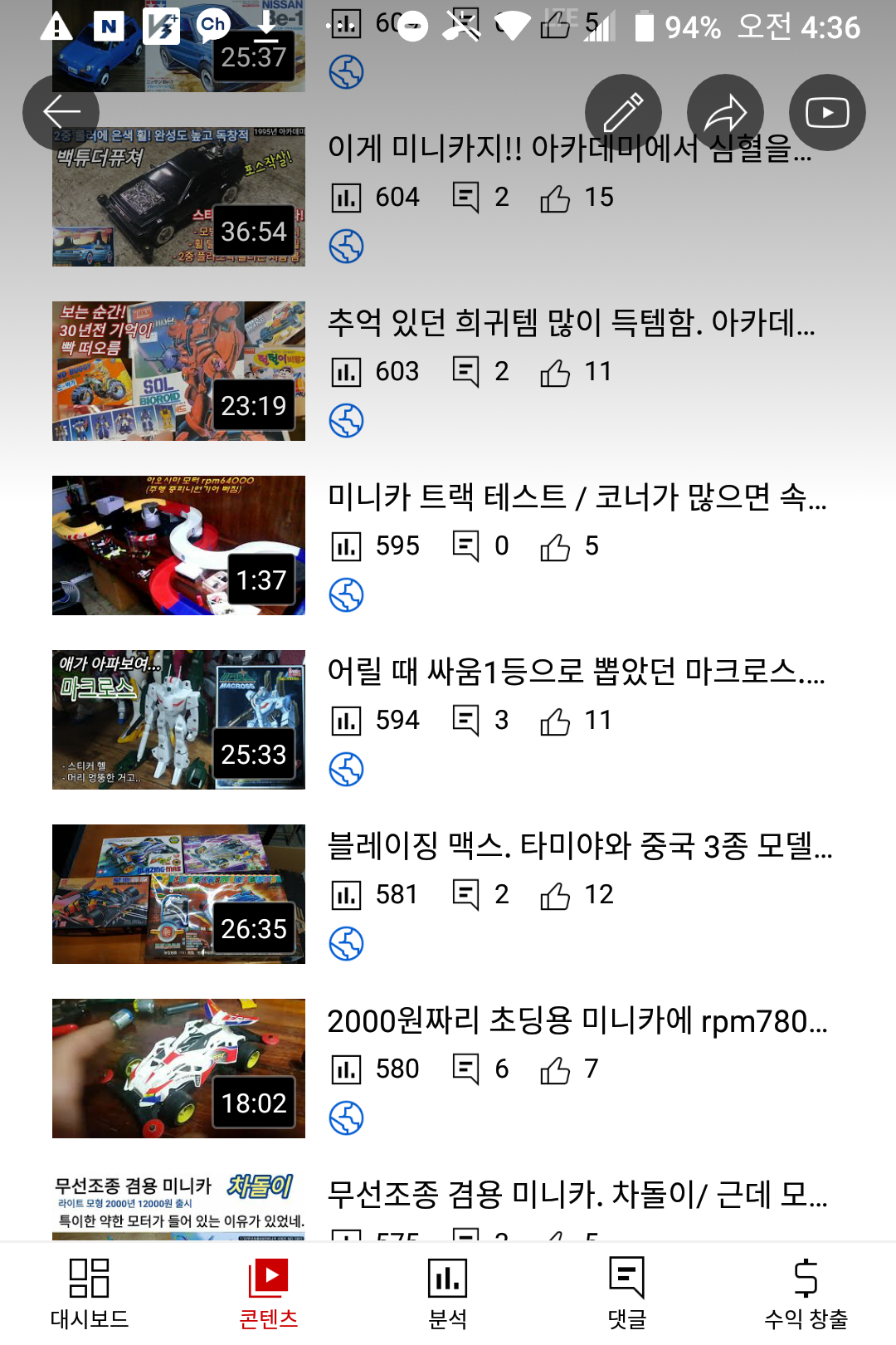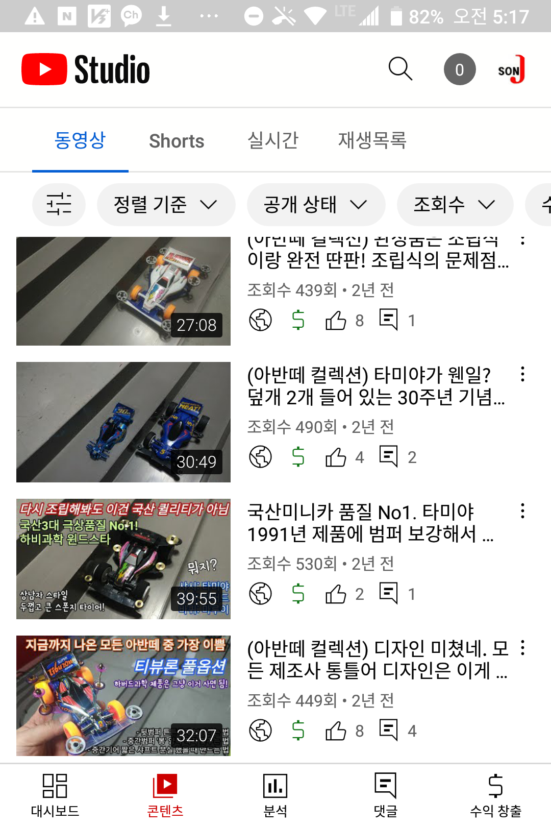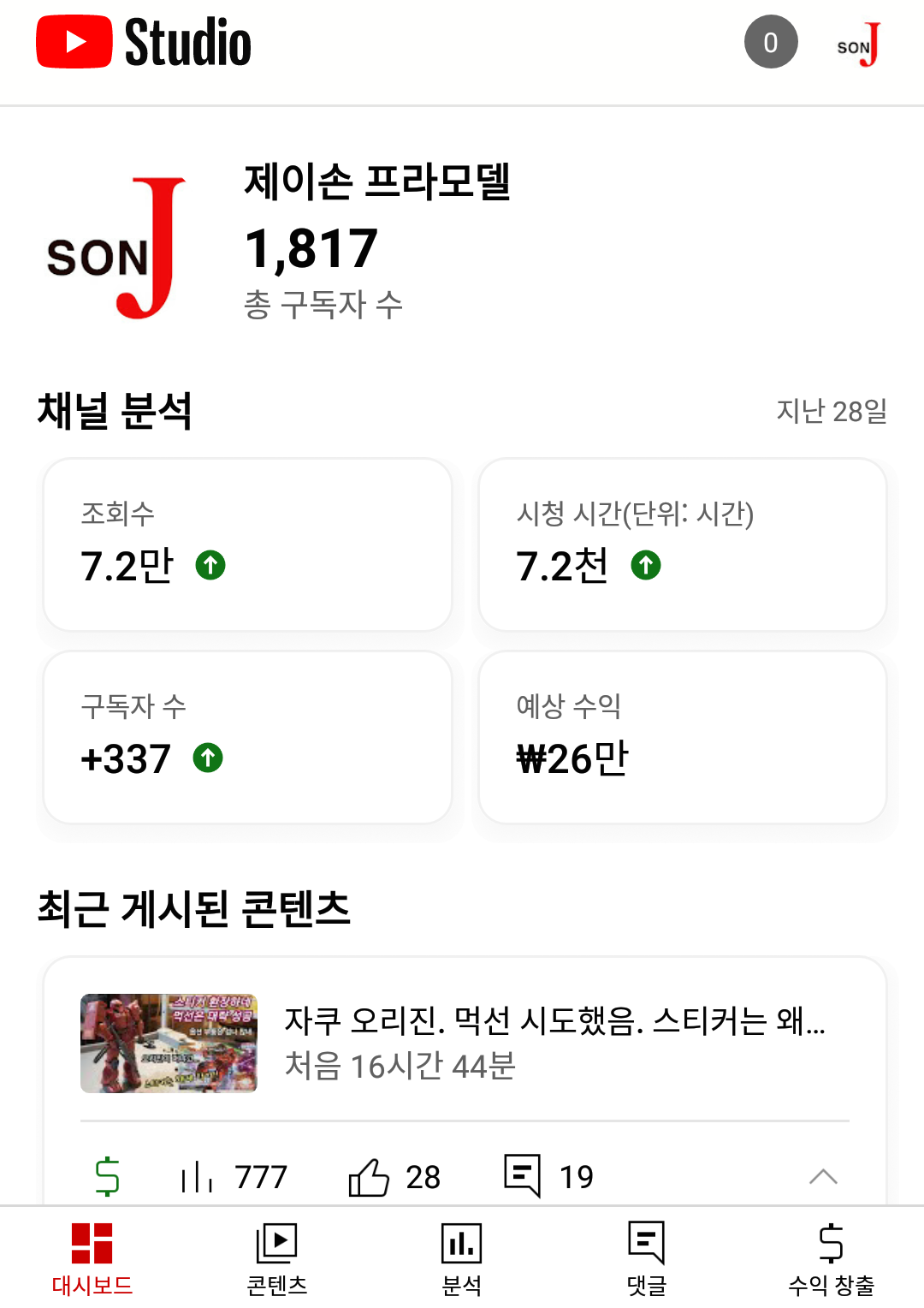 새로 만든 채널에서 가장 인기가 있는 문방구 탐방 영상도 (3000회-5만회) 750회라는 처참한 조회수... 그것도 크리스마스 특집으로 올린 영상이 750회이다. 영상이 올라간 뒤에...다른 컴퓨터 영상/맛집 영상이 올라가면서 막 섞이니... 프라모델 영상을 보는 사람들도 "어? 새로운 영상이네?" 하고 파악하기도 어려운 것이다.