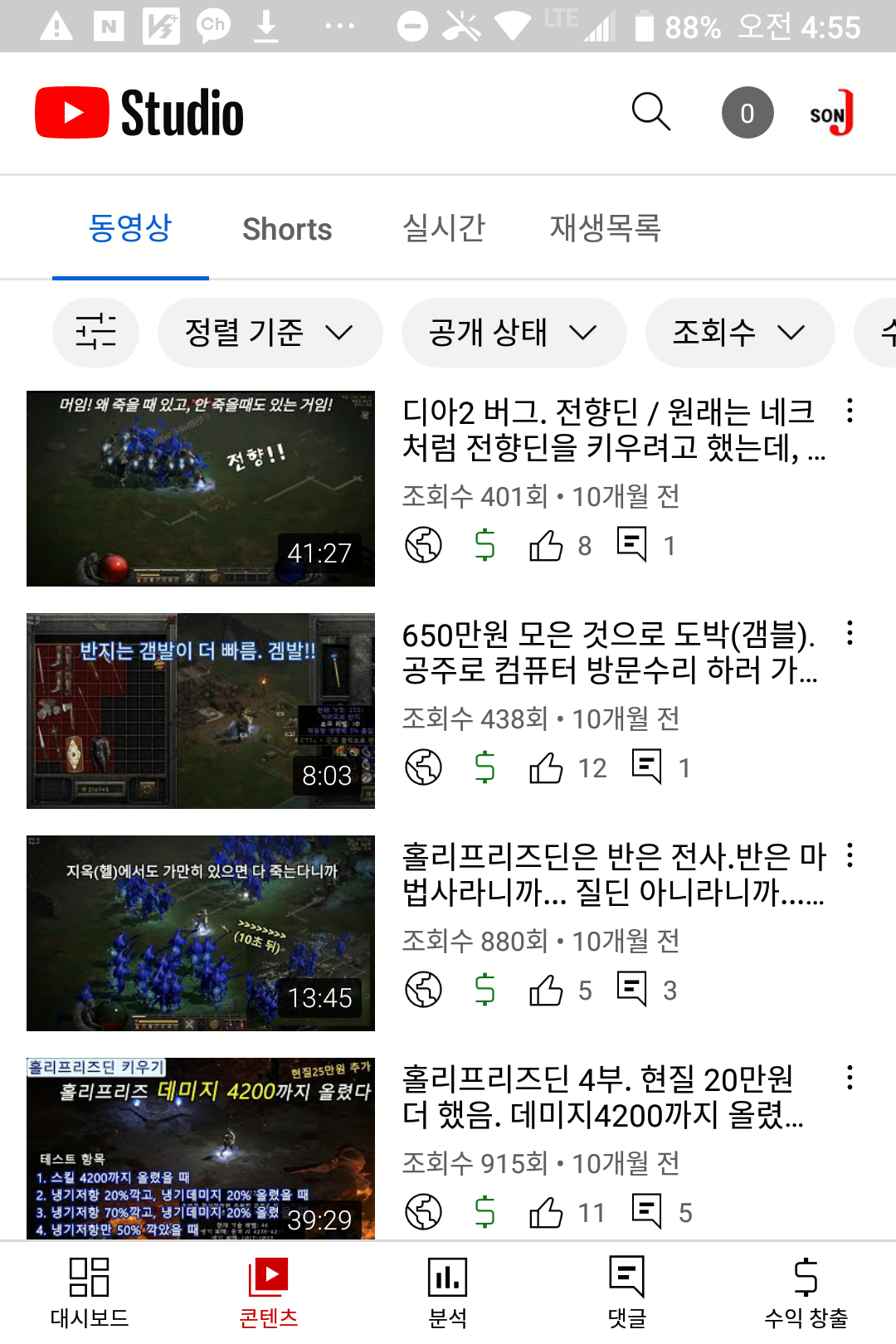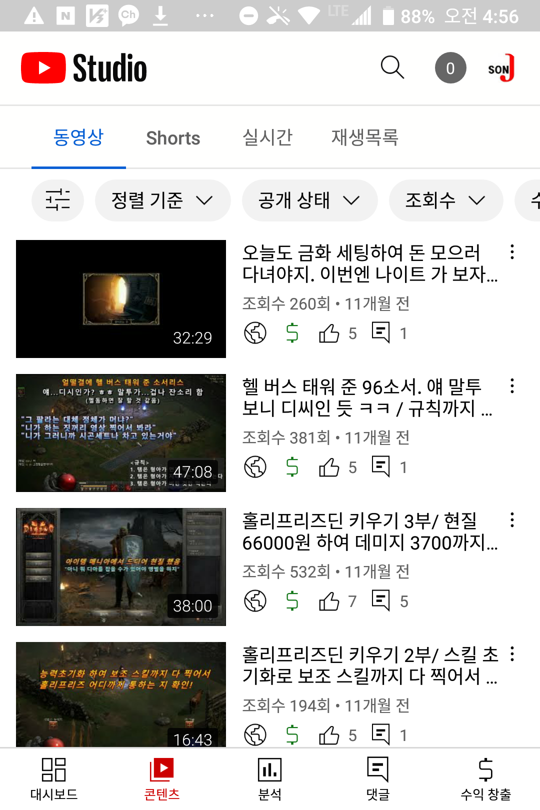 자주 올리면 조회수는 더 떨어져서 300회도 안 나왔다.