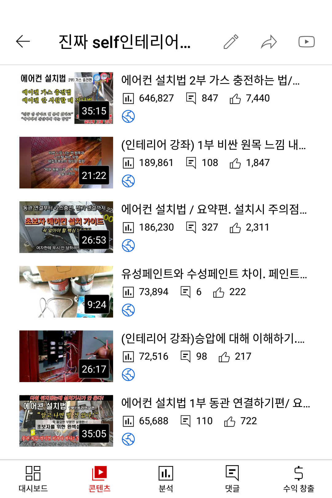 "하나의 채널에 다양한 분야의 지식나눔 영상을 함께 올려야지만, 컴퓨터 관심 있는 사람도 인테리어 글을 보고 그 분야의 바가지나 시공 방법등에 대해서 알게 되는구나!"