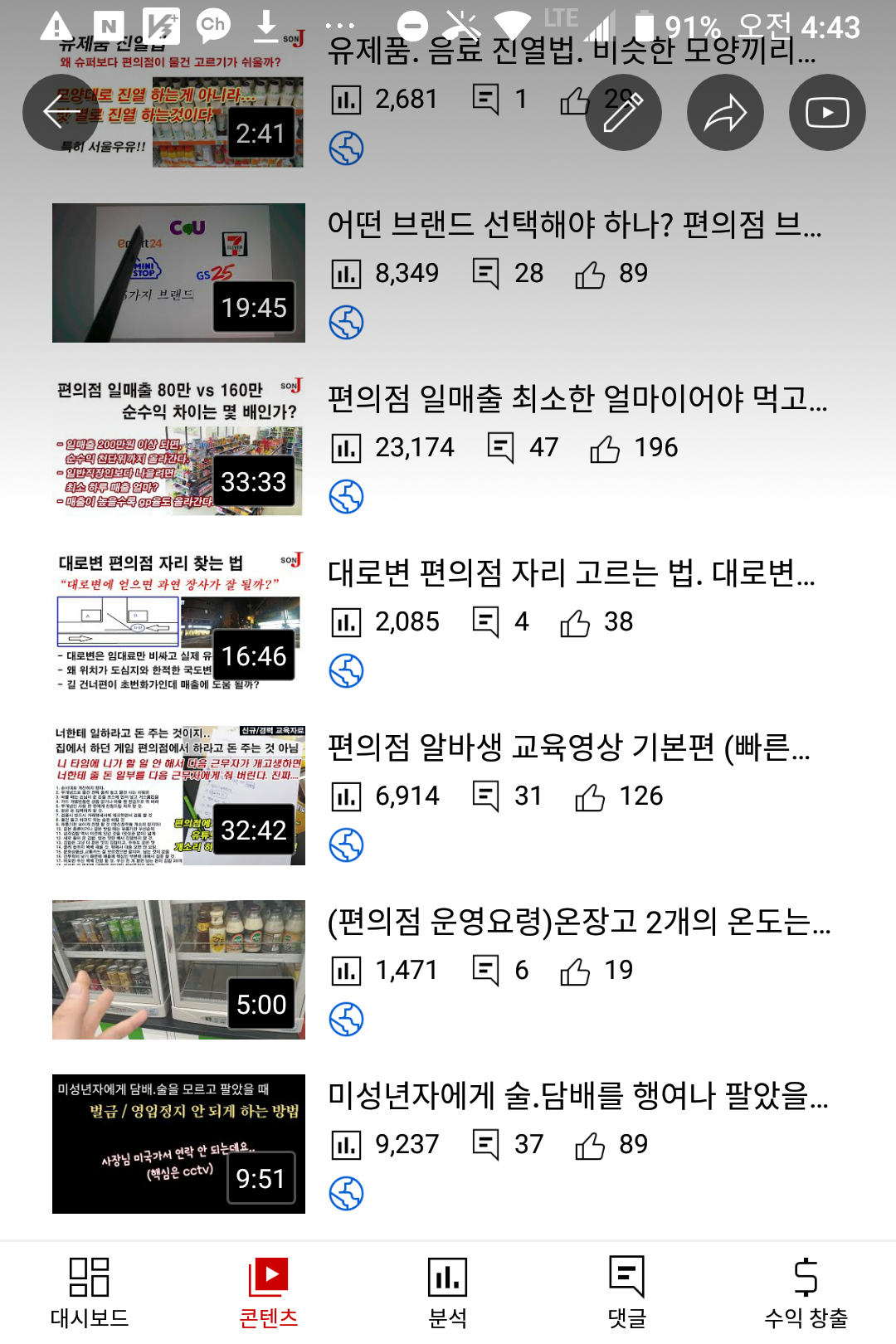 8. 문구점 탐방 영상은 2천~3만회